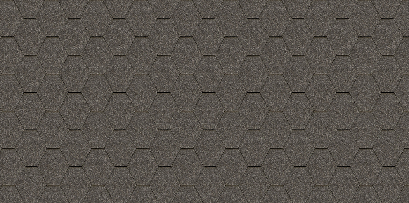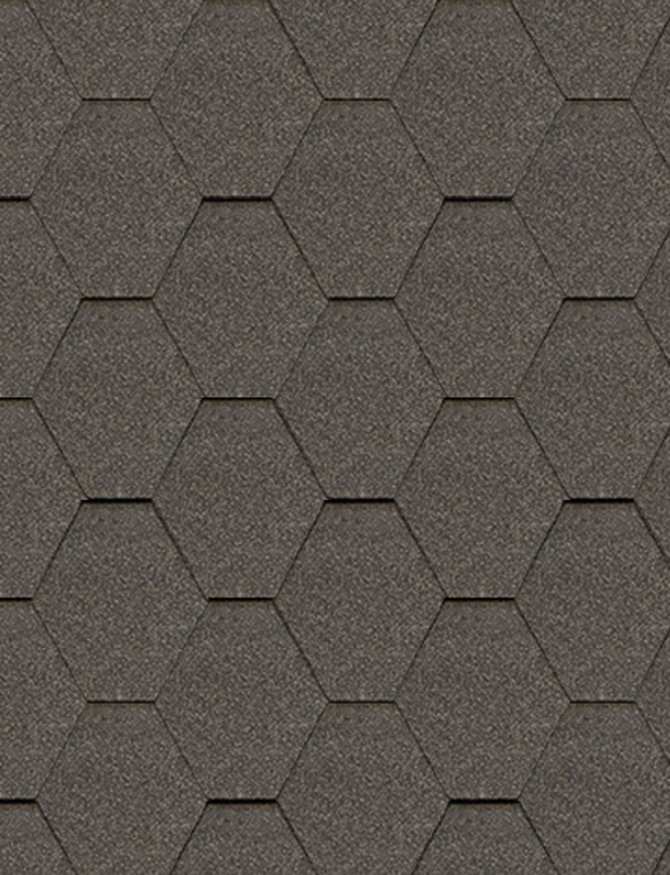 Фигурные элементы гибкой черепицы, они же гонты, укладываются внахлест на сплошное основание кровли. Уклон крыши должен быть не менее 12 градусов. В коллекции Шеффилд с гексагональной формой нарезки гонта 6 цветов на выбор, среди которых универсальный оттенок серого «Фладен».